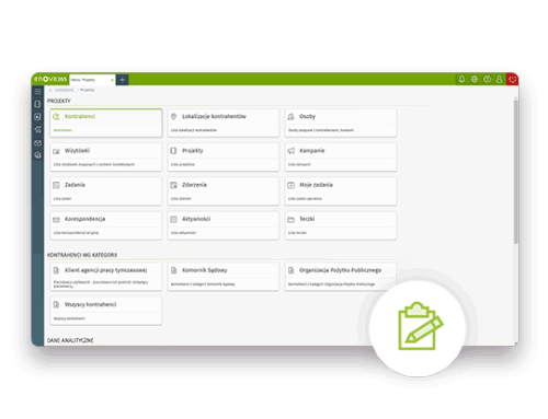 - Prowadź ewidencje kontaktów z Klientem, realizuj kampanie i projekty ze swoimi Kontrahentami – w jednym miejscu!